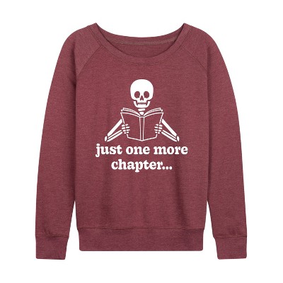 Women's Instant Message Skeleton Hand Petting Black Cat Lightweight French Terry Wide Neck Long Sleeve Graphic Shirt - Heather Maroon - Small