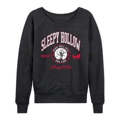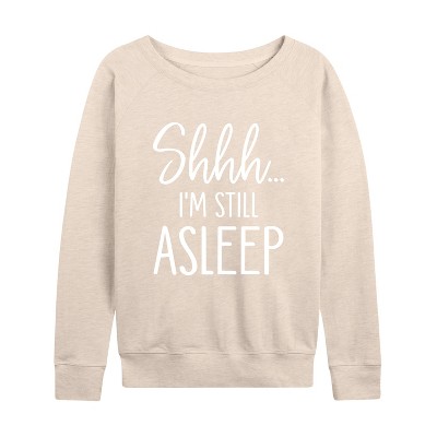 Women's Instant Message Sleepy Head University Lightweight French Terry Wide Neck Long Sleeve Graphic Shirt - Heather Charcoal - Medium