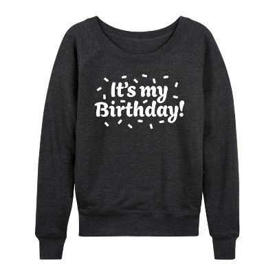 Women's Instant Message Snuggle Weather Lightweight French Terry Wide Neck Long Sleeve Graphic Shirt - Heather Charcoal - X-Large