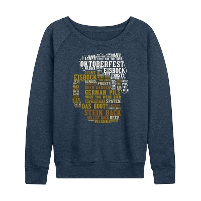 Women's Instant Message Spring Lightweight French Terry Wide Neck Long Sleeve Graphic Shirt - Heather Indigo - Large