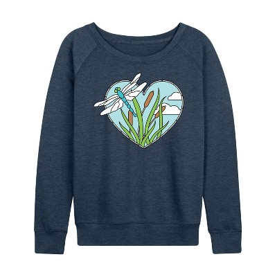 Women's Instant Message Spring Lightweight French Terry Wide Neck Long Sleeve Graphic Shirt - Heather Indigo - Large