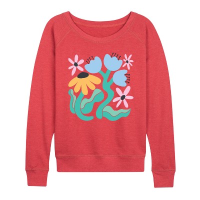 Women's Instant Message Spring Lightweight French Terry Wide Neck Long Sleeve Graphic Shirt - Heather Indigo - Small