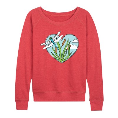 Women's Instant Message Spring Lightweight French Terry Wide Neck Long Sleeve Graphic Shirt - Heather Maroon - Small
