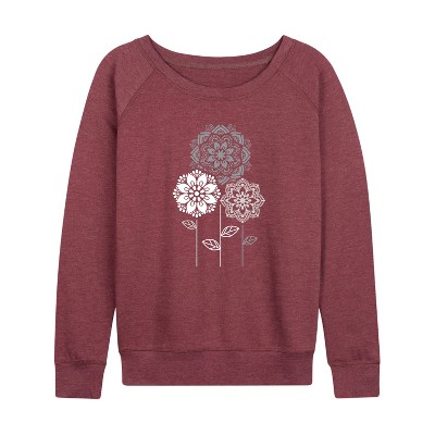 Women's Instant Message Spring Lightweight French Terry Wide Neck Long Sleeve Graphic Shirt - Heather Indigo - Small