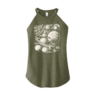 Women's Instant Message Star Cat Graphic High Neck Tank - Heather Military Green - X-Large
