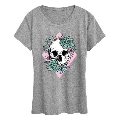 Women's Instant Message Succulent Skull Graphic Racerback Tank - Heather Grey - Small