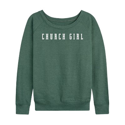 Women's Instant Message Sunday Keep It Holy Lightweight French Terry Wide Neck Long Sleeve Graphic Shirt - Heather Indigo - Small