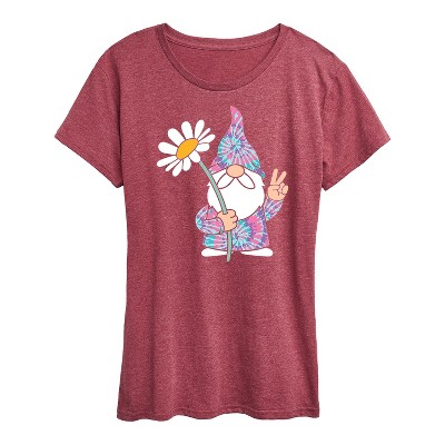Women's Instant Message Sunflower Gnome Short Sleeve Graphic T-Shirt - Heather Burgundy - 3X