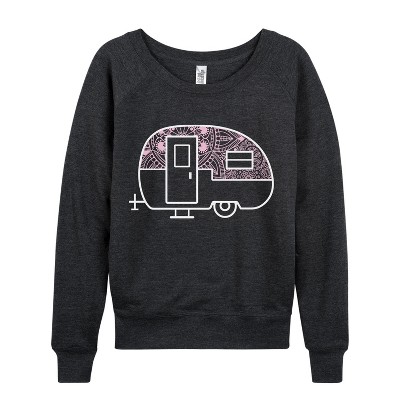 Women's Instant Message Sunflower Mandala Lightweight French Terry Wide Neck Long Sleeve Graphic Shirt - Heather Charcoal - X-Large