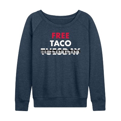 Women's Instant Message Taco Enthusiast Lightweight French Terry Wide Neck Long Sleeve Graphic Shirt - Heather Indigo - Small