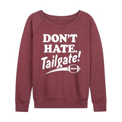 Women's Instant Message Tailgate Vibes Lightweight French Terry Wide Neck Long Sleeve Graphic Shirt - Heather Indigo - Small