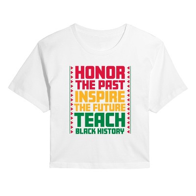 Women's Instant Message Teach Black History Cropped Graphic T-Shirt - White - X-Large