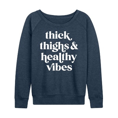 Women's Instant Message Teach Them To Be Kind Lightweight French Terry Wide Neck Long Sleeve Graphic Shirt - Heather Indigo - Medium