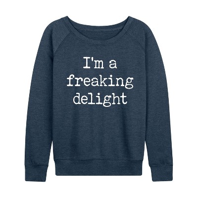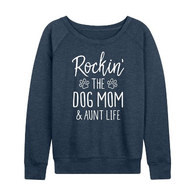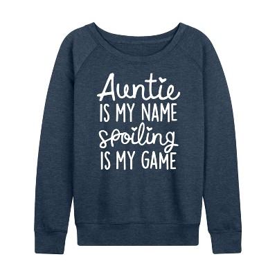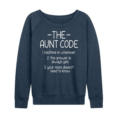 Women's Instant Message The Aunt Code Lightweight French Terry Wide Neck Long Sleeve Graphic Shirt - Heather Indigo - Medium
