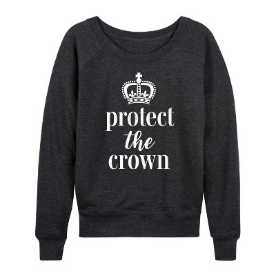 Women's Instant Message The Crown Must Win Lightweight French Terry Wide Neck Long Sleeve Graphic Shirt - Heather Charcoal - Medium