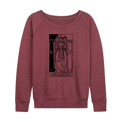 Women's Instant Message The Devil Tarot Lightweight French Terry Wide Neck Long Sleeve Graphic Shirt - Heather Maroon - X-Large