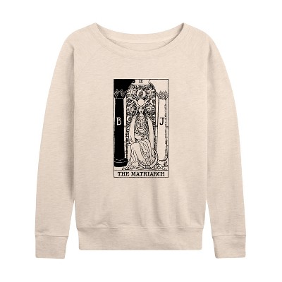 Women's Instant Message The Devil Tarot Lightweight French Terry Wide Neck Long Sleeve Graphic Shirt - Heather Maroon - Small