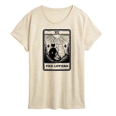Women's - Instant Message - The Lovers Tarot With Cats Oversized Graphic T-Shirt