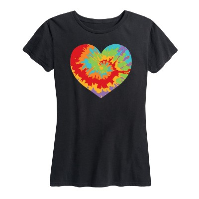 Women's Instant Message Tie Dye Heart Short Sleeve Graphic T-Shirt - Navy - 2 X-Large