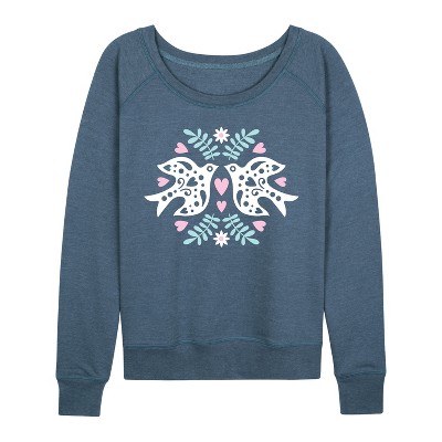 Women's Instant Message Tie Dye Lips Lightweight French Terry Wide Neck Long Sleeve Graphic Shirt - Heather Blue - 1X