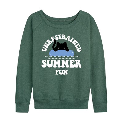 Women's Instant Message Unbothered University Lightweight French Terry Wide Neck Long Sleeve Graphic Shirt - Heather Charcoal - Small