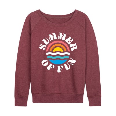 Women's Instant Message Unrestrained Summer Fun Lightweight French Terry Wide Neck Long Sleeve Graphic Shirt - Heather Maroon - Small