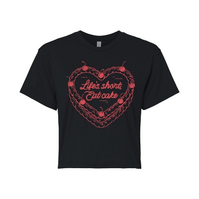 Women's Instant Message Valentines Vibes Cropped Graphic T-Shirt - Black - Large