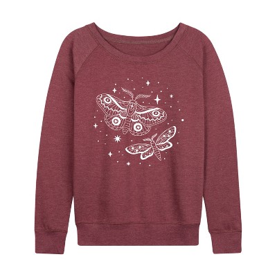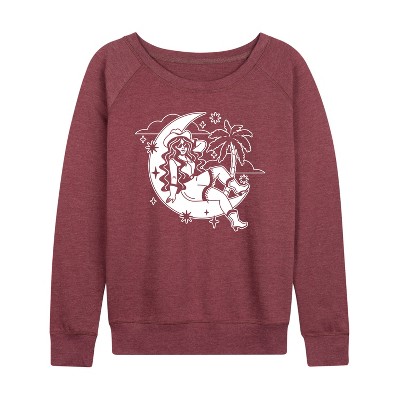 Women's Instant Message Vintage Lamb Lightweight French Terry Wide Neck Long Sleeve Graphic Shirt - Heather Maroon - X-Large