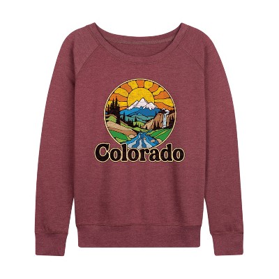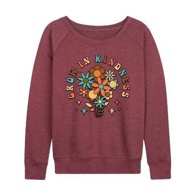Women's Instant Message Window Pane Wildflowers Lightweight French Terry Wide Neck Long Sleeve Graphic Shirt - Heather Maroon - X-Large
