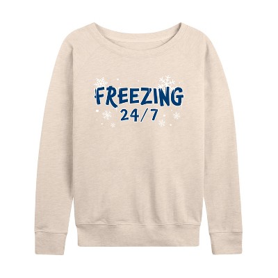 Women's Instant Message Winter Lightweight French Terry Wide Neck Long Sleeve Graphic Shirt - Heather Charcoal - Small