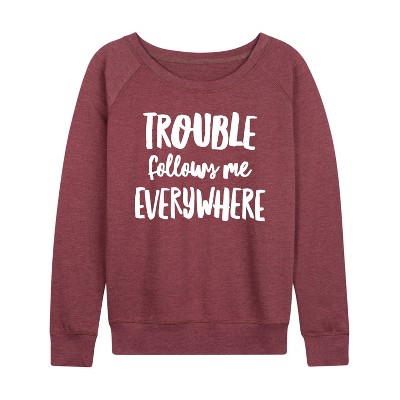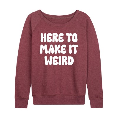 Women's Instant Message Yee Haws Hell Naws Lightweight French Terry Wide Neck Long Sleeve Graphic Shirt - Heather Maroon - Small