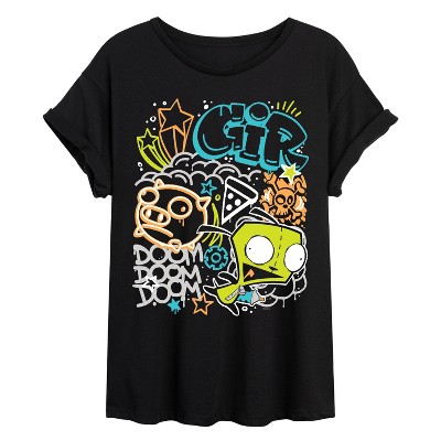 Women's - Invader Zim - Gir Graffiti Oversized Graphic T-Shirt