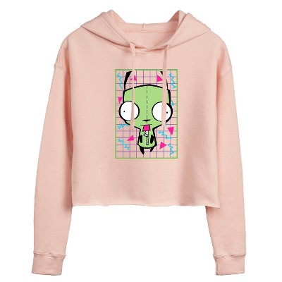 Women's Invader ZIM GIR Sticking Tongue Out Cropped Graphic Hoodie - Blush - Small