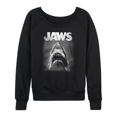 Jaws - Black and White Shark - Juniors Oversized Graphic T-Shirt - Celebrate the essence of Universal's Jaws with officially licensed apparel featuring unique designs crafted exclusively by Hybrid Apparel. Each piece brings beloved characters, iconic imagery, and memorable moments to life, offering Jaws fans a one-of-a-kind way to showcase their passion.