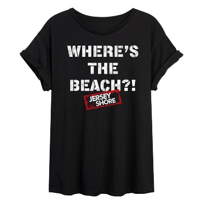 Women's Jersey Shore Wheres The Beach Short Sleeve Graphic T-Shirt - Black - X-Large