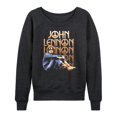 Women's John Lennon Glasses Portrait Lightweight French Terry Wide Neck Long Sleeve Graphic Shirt - Heather Charcoal - Medium