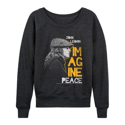Women's John Lennon Jl Close Up Lightweight French Terry Wide Neck Long Sleeve Graphic Shirt - Heather Charcoal - Small
