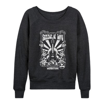 Women's John Lennon Lennon Guitar Lightweight French Terry Wide Neck Long Sleeve Graphic Shirt - Heather Charcoal - 2 X-Large