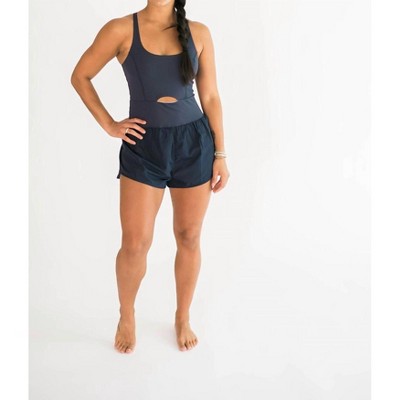Throw it on and go!Experience effortless style and comfort with the Joy Cutout Athletic Romper by Falcon Park, perfect for any activity. This athletic romper, crafted from a 75% nylon and 25% spandex blend with a 95% polyester and 5% spandex lining, ensures freedom of movement without compromising support. It features a unique back strap design and a cute front cutout, effortlessly complemented by its seamless pull-on closure. Ideal for workouts, errands, and lounging, this romper adds a sporty-chic touch to your wardrobe in a solid navy hue. True to size.