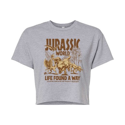 Women's Jurassic Park Tyrannosaurus Rex Cropped Graphic T-Shirt - Heather Grey - Medium