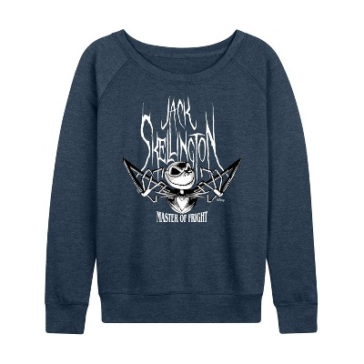 Women's Jurassic World: Rebirth Trex Lightweight French Terry Wide Neck Long Sleeve Graphic Shirt - Heather Indigo - Medium