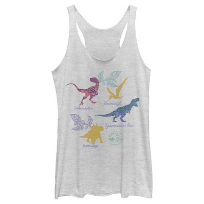 Women's Jurassic World Retro Clever Girl Racerback Tank Top - White Heather - X Small