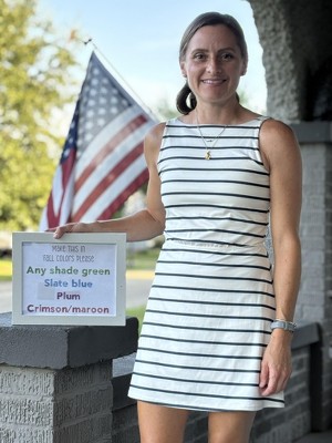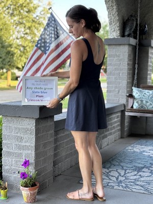 This dress is beyond comfortable! In the picture I had worn the navy dress all day in heat, humidity, even got wet in the rain and it still looked nice and held its shape. Bra cups stay in place well. So do the attached bike shorts. I play and chase my toddlers without having to adjust them. It’s a great length for my short stature, and not too short. For reference I’m 5’0” and 107 lbs and XS is a perfect fit. I hope they make it in fall colors!