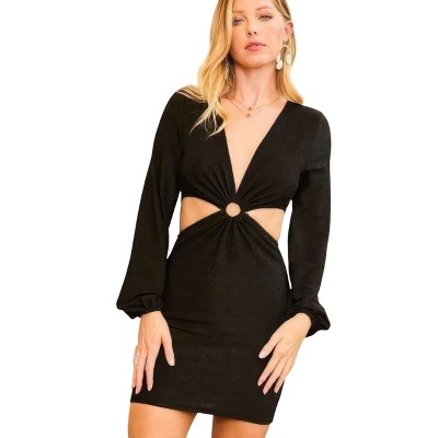 Women's Knitted Sleeveless Tank Top with O-Ring Detail and Neckline,XL,Black
