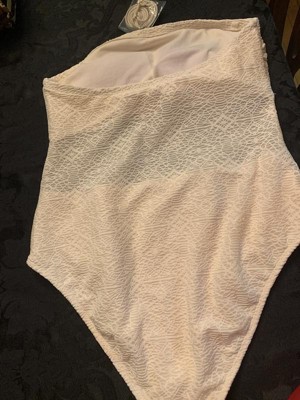 Add a standout style to your swim closet with the Lace Bandeau High-Leg Cheeky Coverage One-Piece Swimsuit from Shade & Shore™. This bandeau one-piece swimsuit features lace detailing allover a fashion-forward look you'll love. Made from recycled polyester-spandex fabric, this sleeveless swimsuit helps keep you comfortable whether you're diving, having fun in the sun or indulging in other activity. Providing cheeky coverage, this pull-on swimsuit has removable cups for customizable coverage, while the built-in shelf bra offers the right support.