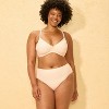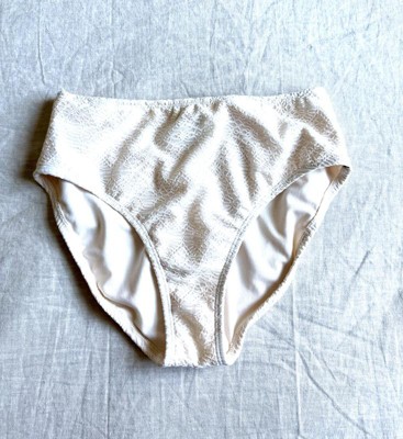 Create tons of chic swim looks with the High-Rise Full Coverage Bikini Bottom from Shade & Shore™. This cream bikini bottom features a textured design for an on-trend look that goes well with both your solid-color and printed swim tops. Made from recycled polyester fabric with spandex, this high-rise bikini bottom helps you move with ease in and out of the water.