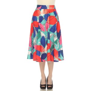 Product Name: Women's Leaf Print Flared Midi Skirt Red Small -White Mark