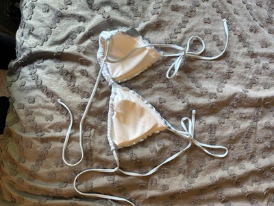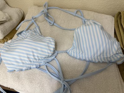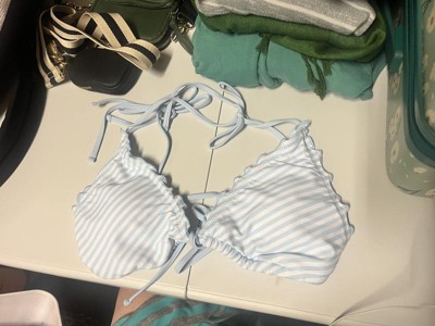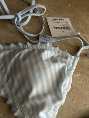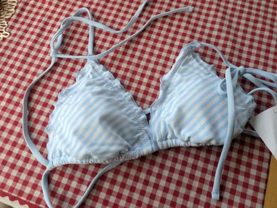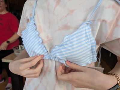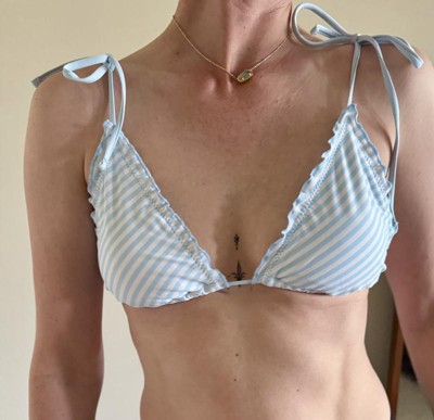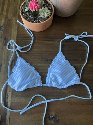 The Women's Lettuce Edge Triangle Bikini Top by Shade & Shore is as adorable on as it is on the hanger. I got the XS and it fit since the back and straps have ties, so I could adjust it to my body. It has a lining for a little more protection when in the pool also. I loved the baby blue and white stripe design! I also liked the fact that the top and bottoms are sold individually to get a custom fit for both pieces.