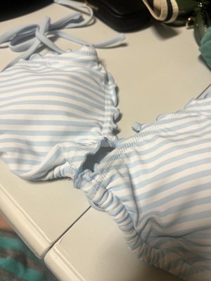 Summer fun, cute baby blue white striped bikini