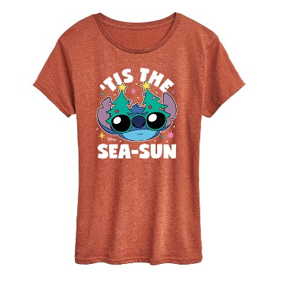 Lilo & Stitch - Merry Stitchmas - Women's Short Sleeve Graphic T-Shirt - Celebrate the ohana with Lilo & Stitch graphic apparel, blending new visuals with classic heartwarming moments featuring Lilo, Stitch, and the bonds of family.